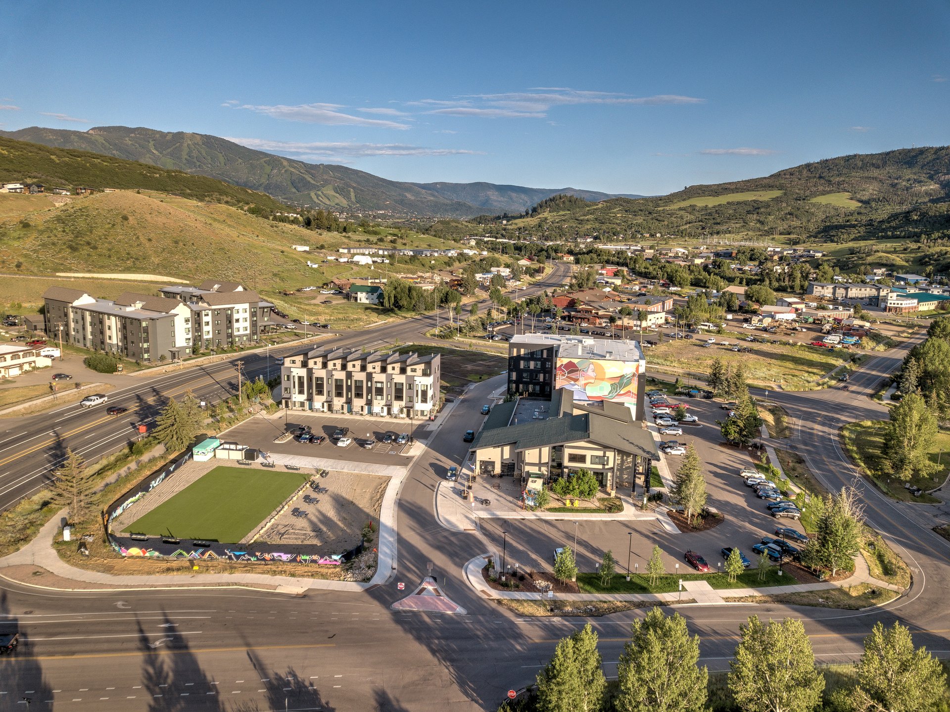 The project anchors a prominent corner at Lincoln Avenue and Elk River Road within Basecamp, a mixed-use residential community that has steadily expanded its retail and service offerings. Existing businesses include Steamboat Fit, M3 Golf Lab, and Orange Peel Bikes, with the market and bakery reinforcing the neighborhood’s evolution into a more complete, walkable hub.