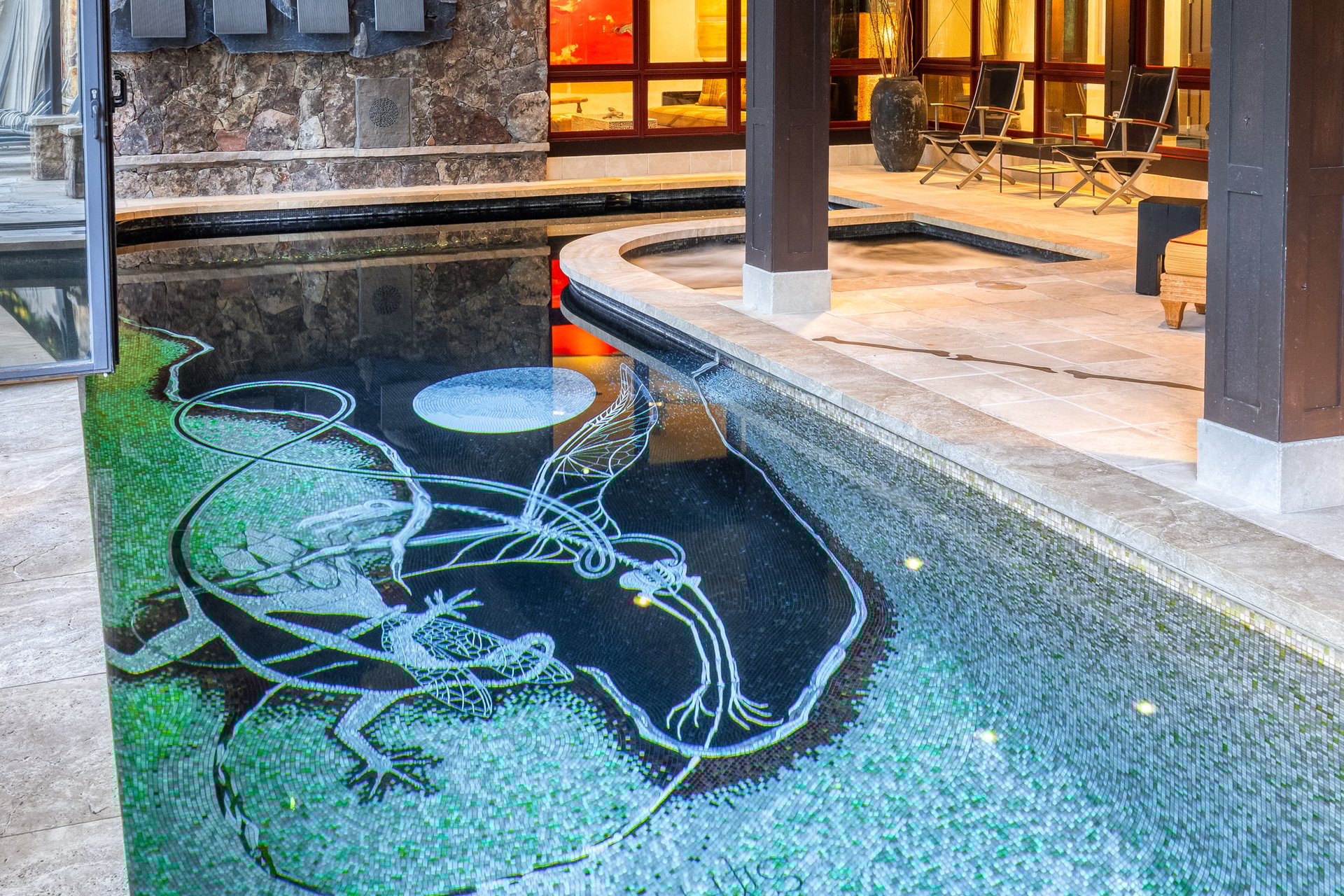 I had done a painting in 1997 called Sylph. The owner saw it and wanted to buy it, but it had sentimental value to me. I wasn't ready to let it go. When we started building, she said: Can you paint that painting in my pool? I said yes.