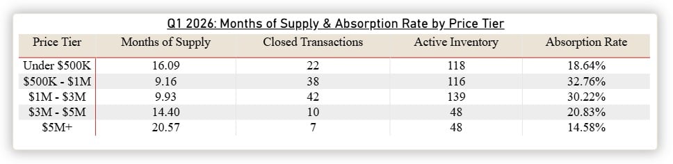 Explore the Q1 2026 market data here. Ready to explore what's available? Contact us at [email protected] to see active listings and off-market opportunities.