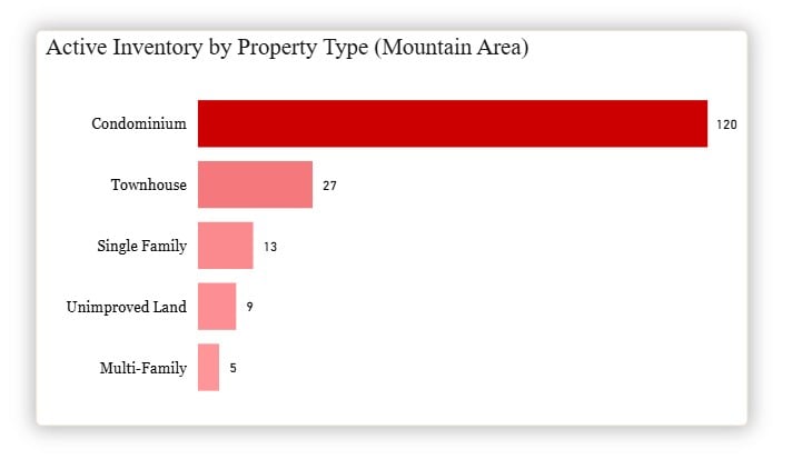 As of the publishing of this article, there are 90 one- and two-bedroom condos available on the mountain. Single-family homes available on the mountain? Thirteen.